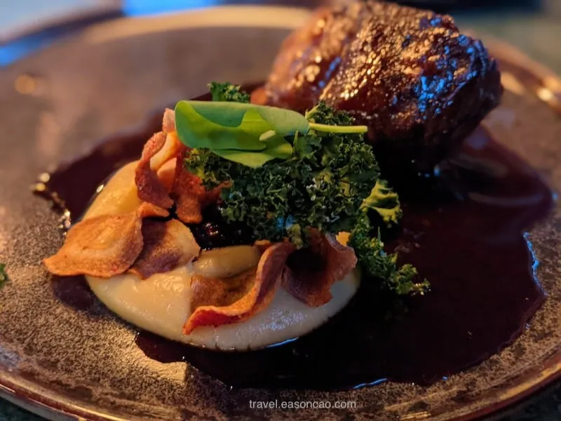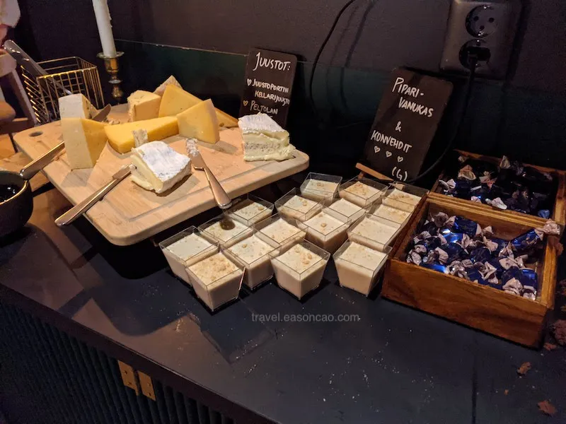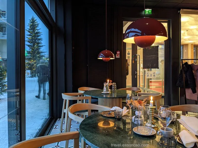 問了服務生才知道那個玻璃球的位子需要低消 €200 歐元以上,不過要晚餐時段才開放。但即使不是坐在浮誇的用餐區,餐廳的用餐氛圍也十分舒服,餐點也非常美味,如果下次再來 Rovaniemi,我會願意再度光顧。