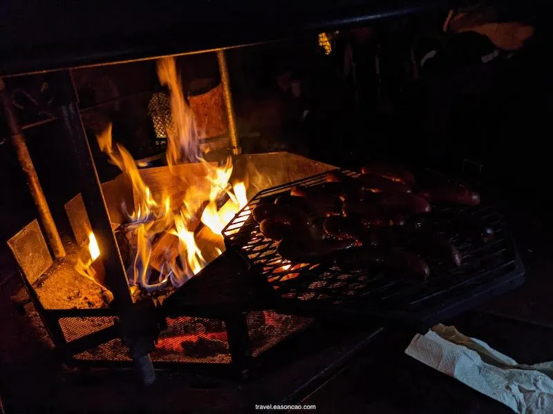 但也因為室外冰冷的溫度,圍在火堆旁吃著燒烤格外溫暖,讓人感覺在陰冷的黑暗中感到充滿希望。總覺得芬蘭當地的木材燒出來火焰的顏色特別鮮明、空氣中更是瀰漫著一股濃郁但不刺鼻的木炭香味。
