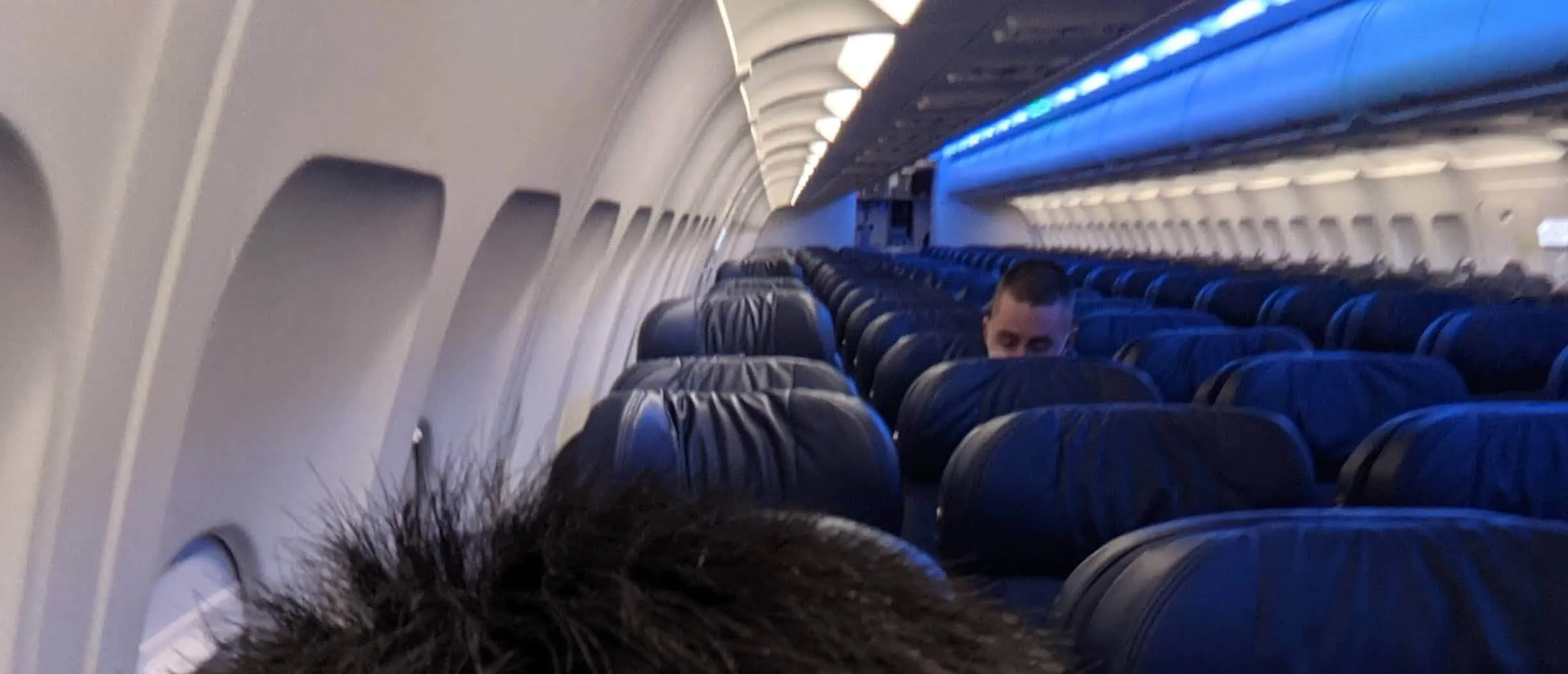 就在跟著同班機的其他旅客點頭示意、一同上機場接駁車後,我才意識到原來整班機加上空服員跟機長,不到 10 個人搭一台 A320。看著這麼空的座位,我終於懂為什麼剛剛 Check-in 的時候地勤一派輕鬆地跟我說今天的座位任你挑了: