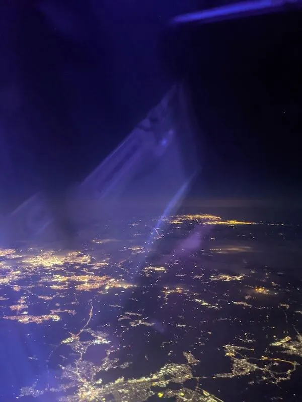 搭上飛機的那刻,心裡雖然閃過各種入境遇到問題的荒謬想法,比如又遇到天氣問題改降其他機場超過快篩報告效期之類的,但在飛機上看到天氣晴朗的晚上,讓人瞬間鬆了一口氣。